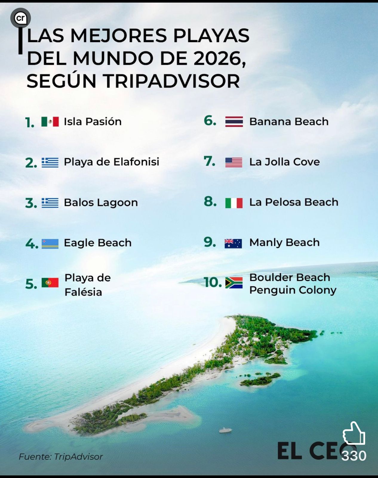 El turismo internacional vuelve a mirar hacia México. De acuerdo con el ranking anual de Travelers’ Choice Best of the Best Beaches 2026 de TripAdvisor, la playa número uno del mundo es mexicana: Isla Pasión, ubicada frente a la costa de Cozumel, Quintana Roo.
